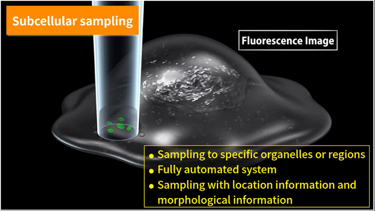 Unlike existing cell isolation devices, the SS2000 can not only isolate a whole-cell but also sample only the target site inside the cell. It is possible to sample cytoplasm and regions containing target organelles selectively.