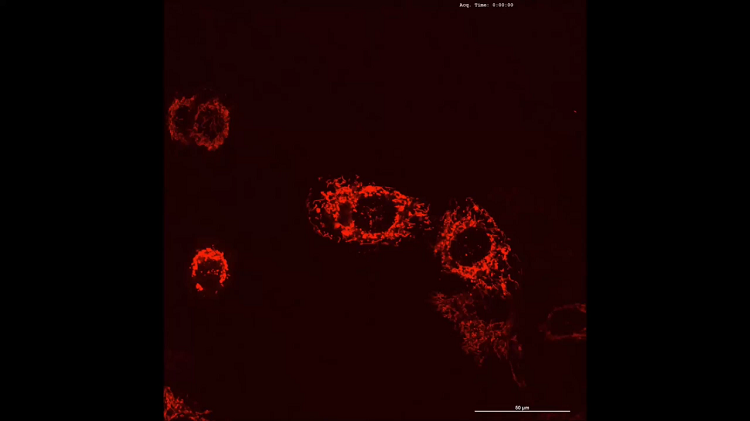 活细胞线粒体动态观察:10秒拍1张,拍摄了61hr6min,共22000张,最后观察到细胞还是存活的,还在分裂,说明激光对活细胞的毒性很小、伤害很小。